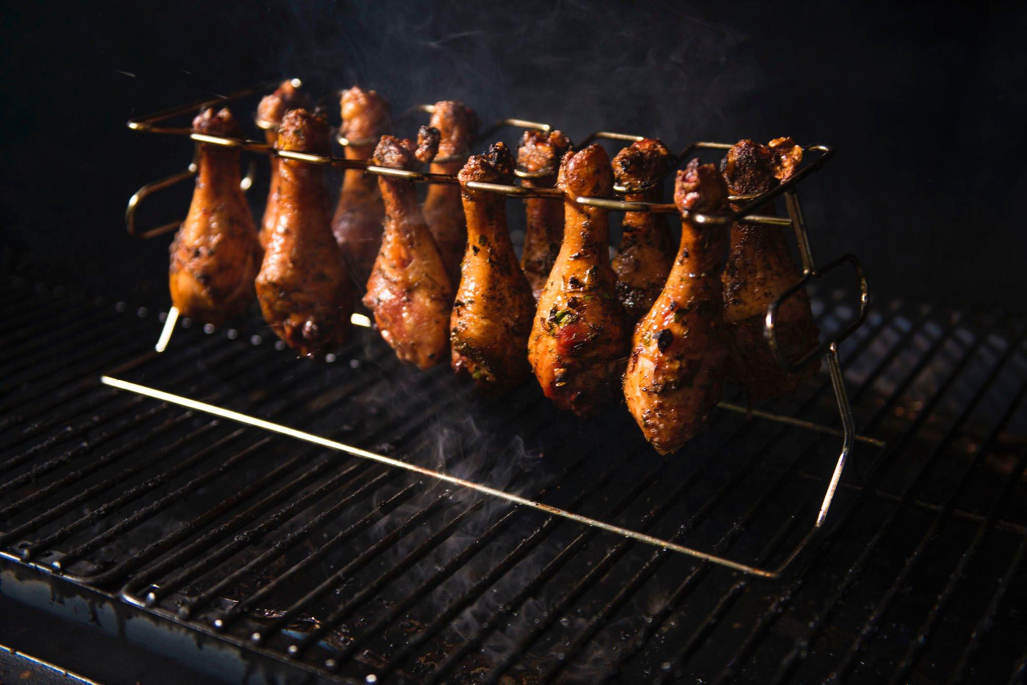 The ptg bbq grill plugs into a standard 110v outlet so your wood fired food can move wherever you do.