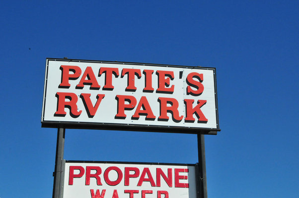 Travel westbound for just two blocks and the campground entrance will be on the right side of the hihway.